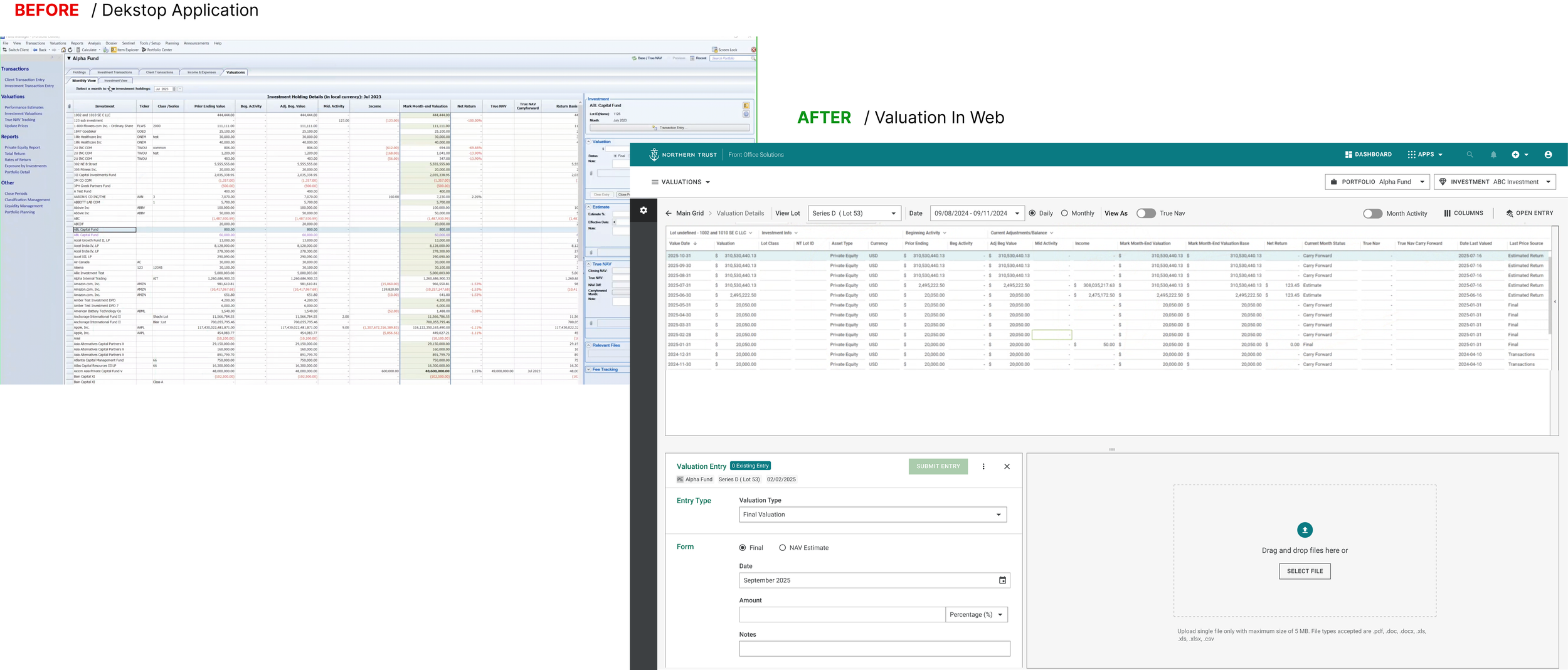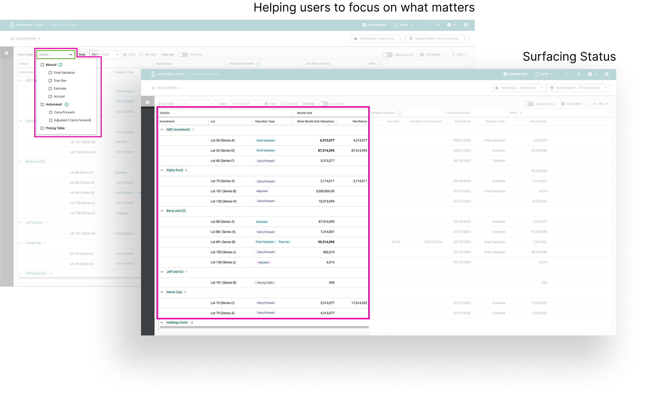 Through this process we identified eight distinct valuation statuses used internally at Northern Trust.